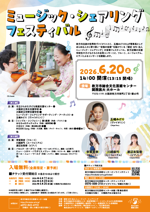 枚方市総合文化芸術センター会員先行(電話・WEB) 2026年4月11日(土)